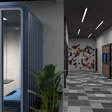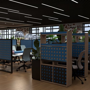 Acoustic plan developed for offices with large and small conference rooms, break rooms, open workspaces, and collaboration areas. The design focused on improving speech privacy, noise control, and overall comfort through eco-friendly materials, sustainable acoustic solutions.